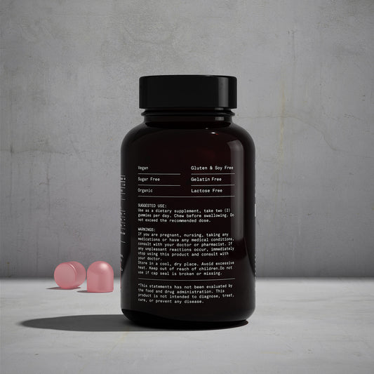 Our gummies stand apart with organic, vegan, sugar free, dairy and soy-free formulations. Housed in elegantly designed, sustainable packaging, they seamlessly blend into the wellness routines of those who cherish both aesthetic beauty and a luxurious lifestyle.